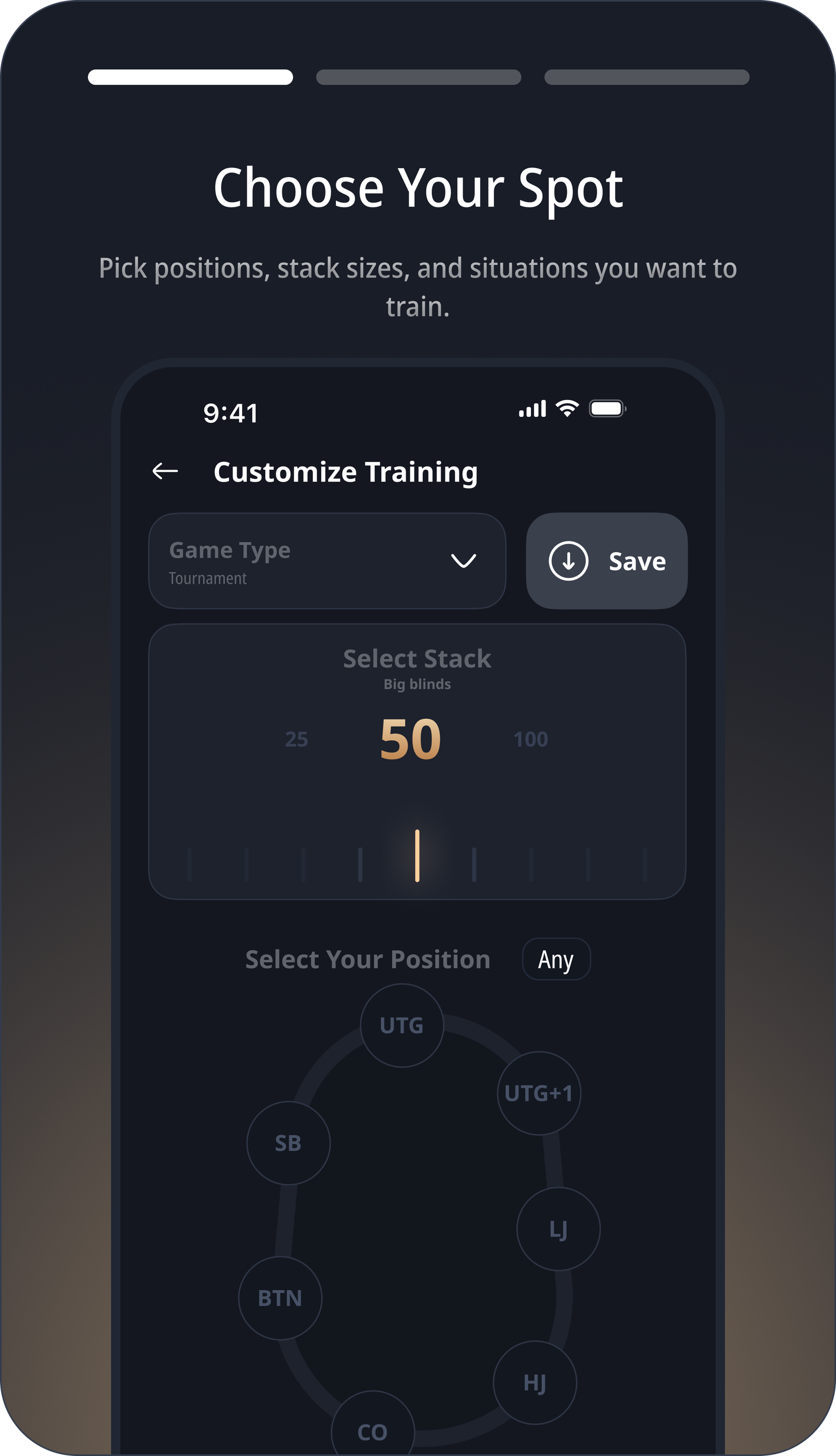 Gamified poker training from your phone